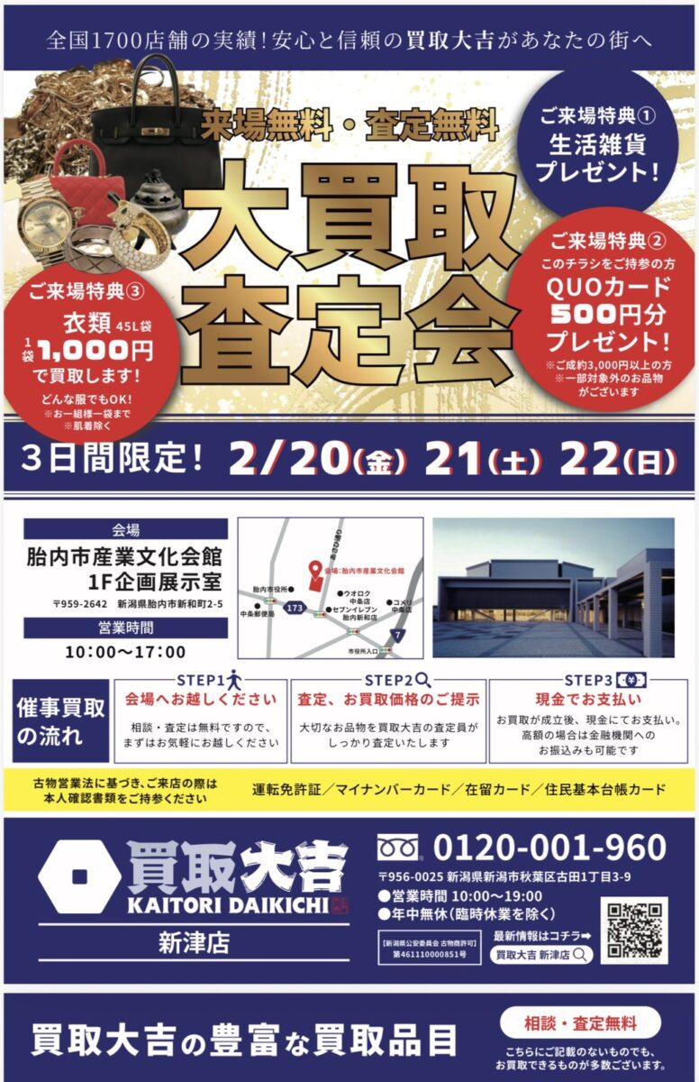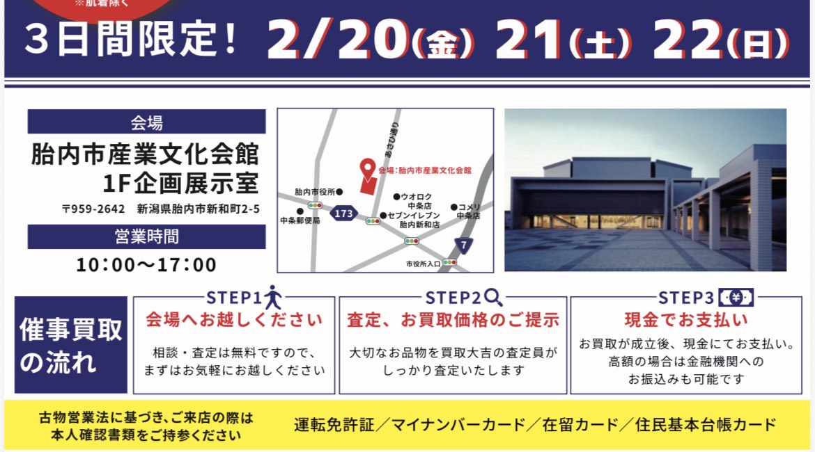 明日、2/20(金)・21(土)・22(日)催事買取のお知らせです📢